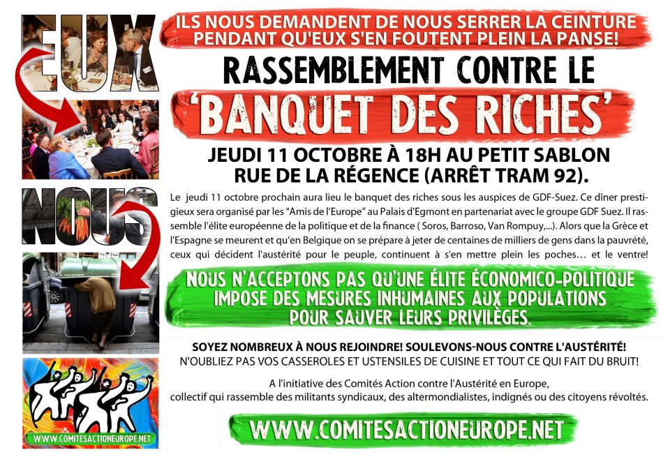 1. 13 Oct - Banquet des Riches à Bruxelles / Préparez les Casseroles Jeudi 11, 11 octobre 2012, 15:15