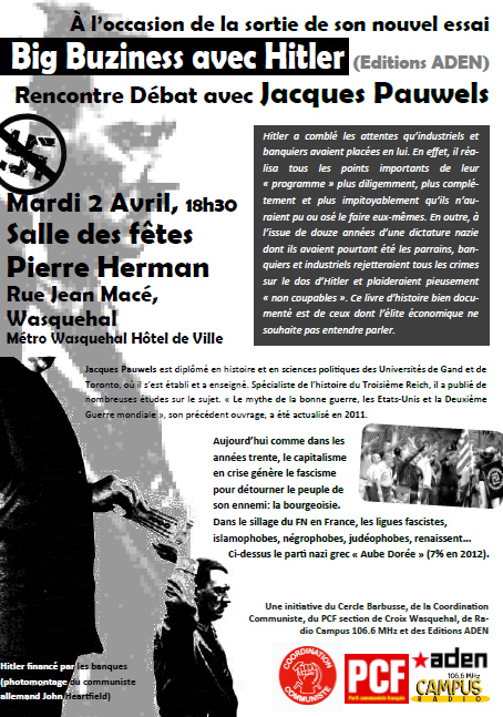 Publie le dimanche 24 mars 2013 par P. bardet - Open-Publishing"Big Buziness avec Hitler" - Rencontre débat avec l’auteur Jacques Pauwels