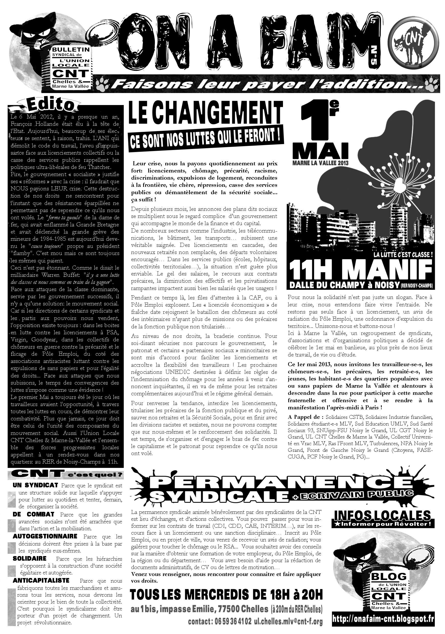 Publie le vendredi 19 avril 2013 par Open-PublishingBulletin On a faim n°6 (Avril 2013) - UL CNT Chelles & MLV