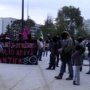 En face, à l’appel de l’ensemble des forces syndicales, associatives et politiques locales près de 200 antifascistes se sont rassemblés à l’entrée du meeting. Au milieu du collectif antifasciste local (RLF Banlieue Est), de RESF, du MRAP, de la FSU, de Solidaires, de la CGT, de la CNT, du NPA et du Front de Gauche, de nombreux Chellois des quartiers populaires de Gambetta et de Grande Prairie ont répondu présent pour affirmer tous ensemble haut et fort l’identité populaire, multiculturelle et cosmopolite de Chelles.