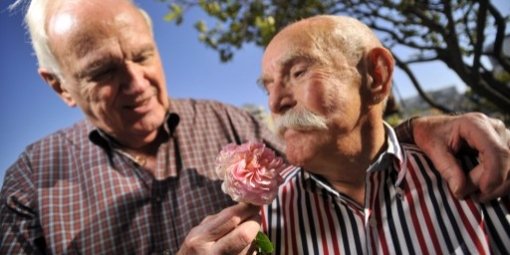 Aux USA, John Darby et Jack Bird ont fêté leur 5 ans de mariage en mai à San Francisco, après 54 ans de vie commune. (AFP - Josh Edelson)