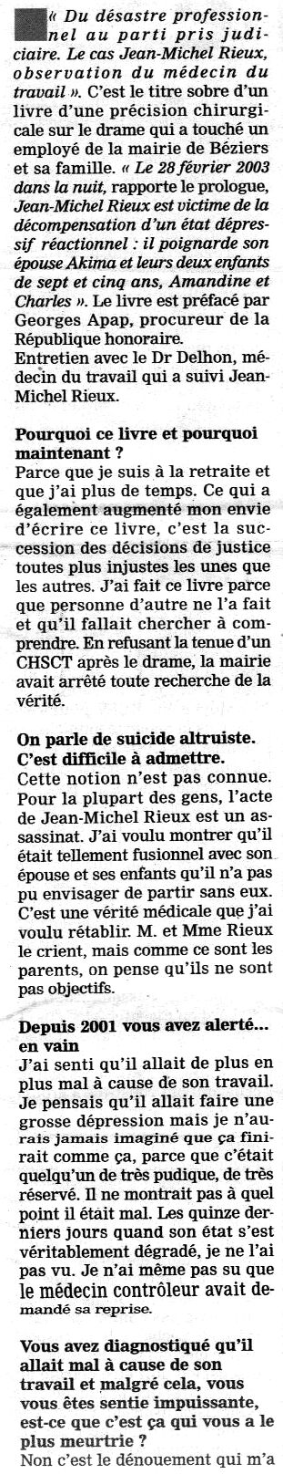 Publie le mardi 2 octobre 2012 par Antoine (Montpellier) - Open-PublishingLe titre complet de cet article est "En souvenir de Jean-Michel Rieux. Pour une médecine du travail au service des salariés contre leur souffrance au travail..."