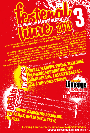 L’aventure du Festenal continue à Montliausut (Montlauzun, 46) du 28 au 30 juin 2013, toujours dans le même état d’esprit, autonome, promouvant la culture occitane, la découverte de nouvelles expériences, la festa, la mise en commun d’alternatives.