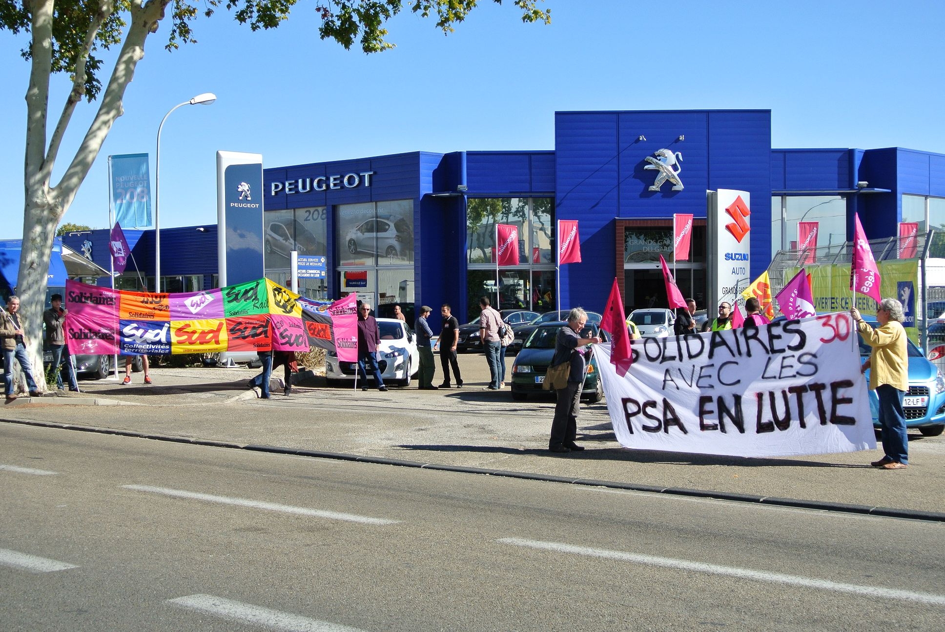 C’est le sens de l’action de Solidaires 30 qui aujourd’hui, samedi 13 octobre, a organisé en soutien aux salarié-es de PSA avec la diffusion du tract de Solidaires Industrie - section SUD PSA devant le concessionnaire Peugeot de Nîmes.