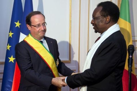 François Hollande décoré de la Grand Croix de l’ordre national du Mali, le 15 juillet 2013 à...Paris