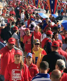 Jour et nuit à Caracas, depuis le mercredi 6 mars 2013, une marche populaire, venue de tous les états du Venezuela, patiente sous le soleil ou dans le froid nocturne pour saluer le corps du président. En une semaine on estime le nombre de visiteurs à 6 millions de personnes.