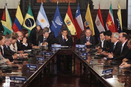 Publie le jeudi 25 avril 2013 par Thierry Deronne - Open-PublishingLima, 19 avril 2013 (PL). La réunion extraordinaire des chefs d’État de l’Union des Nations Sud-Américaines a duré environ deux heures durant lesquelles les pays ont analysé la situation au Venezuela, écouté Nicolas Maduro, échangé des idées et approuvé une déclaration consensuelle, comme l’a expliqué le président hôte de la réunion, le péruvien Ollanta Humala.