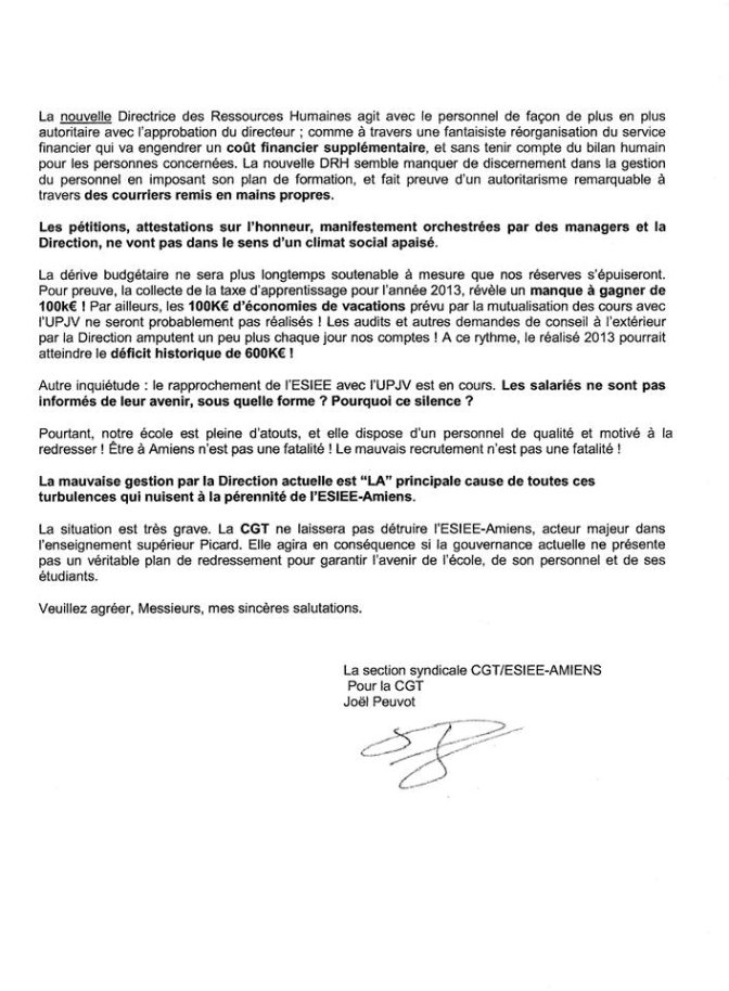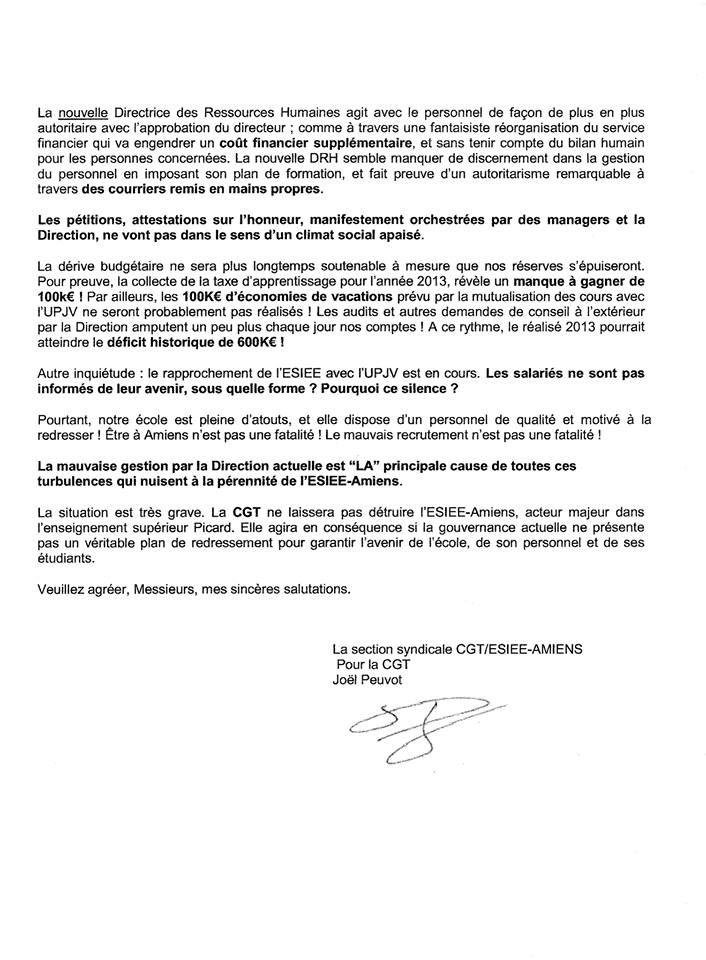 1. La CGT alerte les élus sur la situation de l’ESIEE Amiens, 29 octobre 2013, 13:26, par CED
