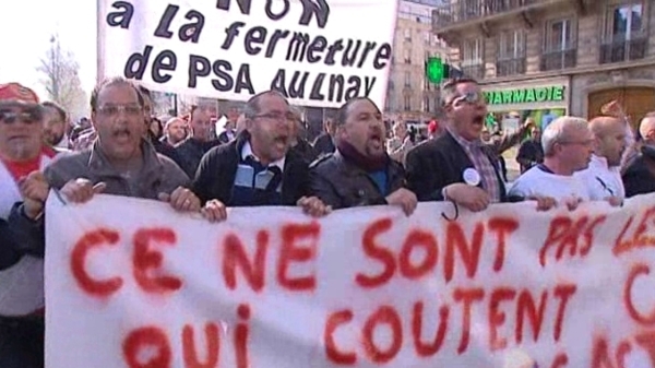 Environ 200 salariés se sont rassemblés devant le siège parisien du groupe automobile où se tenait l’assemblée générale des actionnaires. Un peu plus tôt dans la matinée, le directeur financier Jean-Baptiste de Chatillon avait déclaré que la grève qui paralyse le site PSA Peugeot Citroën d’Aulnay-sous-Bois, en région parisienne, "pourrait (...) obliger" à le fermer dès cette année, au lieu de 2014 comme prévu. "Le fait qu’un petit nombre de personnes continue à perturber notre usine pourrait nous y obliger", avait-il précisé, ajoutant que cela "ne poserait pas de problème", car PSA est en train de faire basculer la production de la Citroën C3, construite à Aulnay, sur le site de Poissy, dans les Yvelines.