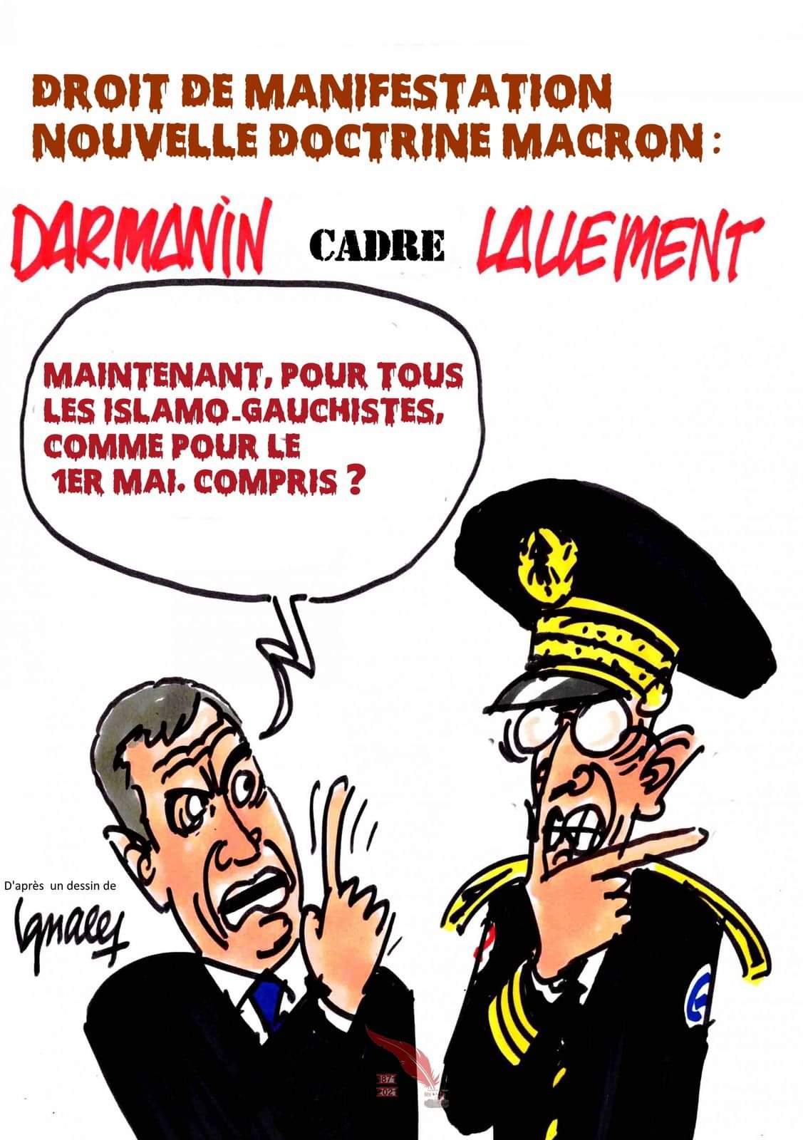 Le Peuple français fier héritier de 1789, 1830, 1848, 1871, 1917, 1936, 1945, 1968, 1981, 1995, 2016, 2018, demande la dissolution immédiate du gouvernement policier macono-lepéniste et la démission immédiate de M.Darmanin et de M.Lallement pour insubordination et non-respect des lois de la république française démocratique et sociale.