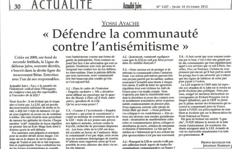 A l’évidence, l’article L 212-1 du Code de la Sécurité Intérieure (ancienne Loi du 10 janvier 1936, modifiée et remaniée) s’applique à la Ligue de Défense Juive, notamment à son chef de bande Joseph-Yossi Ayache (« Yohann » dans le reportage de M6)