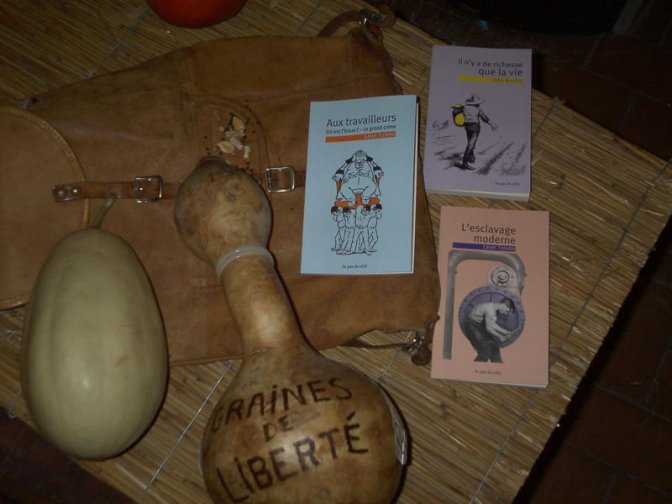 à un journaliste qui disait que les dossiers ou accord étaient déjà signés, légitime etc il répondit : « ce n’est que du papier, la réalité est ici... Si les lois sont faites par des pourris, il ne faut pas obéir aux lois il faut désobéir, elles ne viennent pas du ciel etc...A l’assemblée et Sénat la moyenne d’âge est de plus de 60ans, ils sont tous en collusion avec l’industrie, soit en étant dans les conseils d’administration des firmes ou sont directement cadres comme le sénateur Dassault par exemple. Si les lois sont faites par des bureaucrates, c’est tout a fait « normal » que cela avantage les bureaucrates...Mais je doute que si les lois étaient faites par les paysans et ouvriers, cela n’avantageraient que les paysans et ouvriers parce que la base est saine. » La dame a dit merci mais on sait pas si cela est passé sur les antennes...