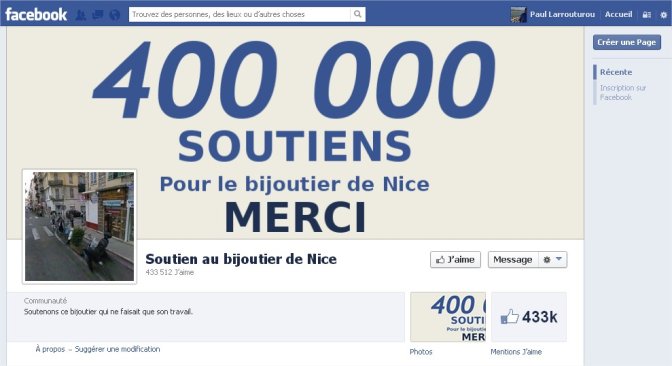 Une page Facebook de soutien au bijoutier niçois qui a abattu mercredi un homme qui venait de lui dérober des bijoux a recueilli plus de 400.000 "j’aime" en moins de 48 heures, activement soutenue par des militants de droite et d’extrême droite.