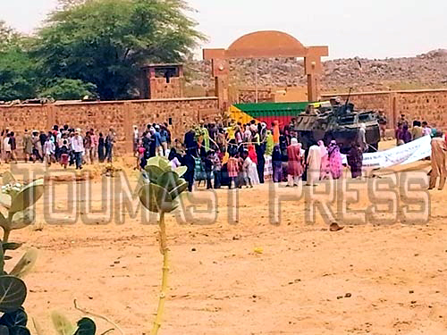 le camps assiégé par les femmes et les enfants touaregs exigeant le départ de l’armée génocidaire malienne