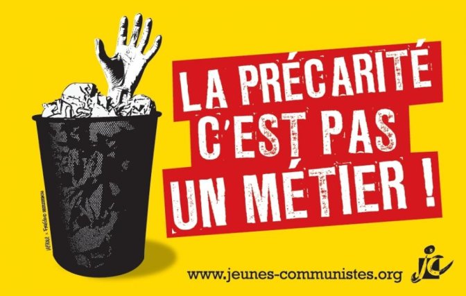 Les jeunes communistes lancent leur semaine d’actions dès le 13 mai, pour remettre la justice et le droit à la dignité au cœur du droit au travail, plutôt que les caprices du cours de la bourse, au mot d’ordre de : « La précarité, c’est pas un métier ! » En porte-à-porte dans les résidences universitaires, les foyers de jeunes travailleurs, jusque devant les lycées et les établissements de formation professionnelle comme les CFA, nous ferons entendre les revendications des jeunes qu’on bafoue sans cesse : est-ce avec cette multiplication des contrats précaires que l’on va lutter contre la précarité ? Est-ce en permettant aux entreprises de licencier plus facilement que l’on va créer de l’emploi ? Est-ce avec des cours sur « l’esprit d’entreprise » qu’on va former les jeunes salariés émancipés de demain ? Qu’est-ce que l’esprit d’entreprise ? L’optimisation fiscale d’une Bettencourt ? La politique salariale d’un Carlos Ghosn ? Après le succès de la campagne « Wanted ! Patrons-voyous » qui exigeait qu’on aille chercher l’argent là où il se trouve vraiment, qui démontrait que plutôt que de « coût du travail » on pouvait véritablement parler de parasitisme du capital et de la loi du profit ; nous entendons passer un nouveau cap avec le rendez-vous du 16 mai devant l’Assemblée Nationale.