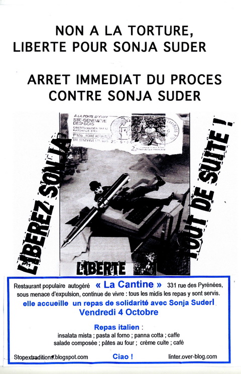 Pour la deuxième fois ils mettent à notre disposition leur lieu et leur présence pour un repas de soutien aux collectifs de solidarité avec Sonja, stopextraditions et linter.