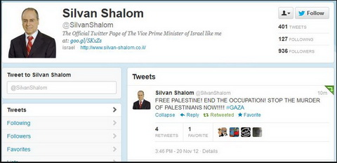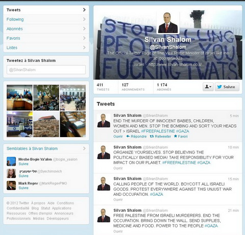 1. Les comptes Facebook, Twitter, Youtube et le site perso du vice-premier ministre d’Israel, Silvan Shalom piraté..., 21 novembre 2012, 11:44, par Roberto Ferrario