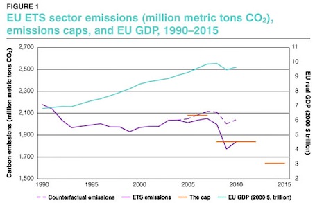 Il souligne notamment qu’en Europe, les émissions de gaz carbonique ont diminué, ce qu’il attribue au marché des émissions, dit ETS (European trading system) :