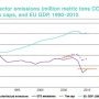 Evolution des émissions de CO2 et du produit intérieur brut dans l’Union européenne.