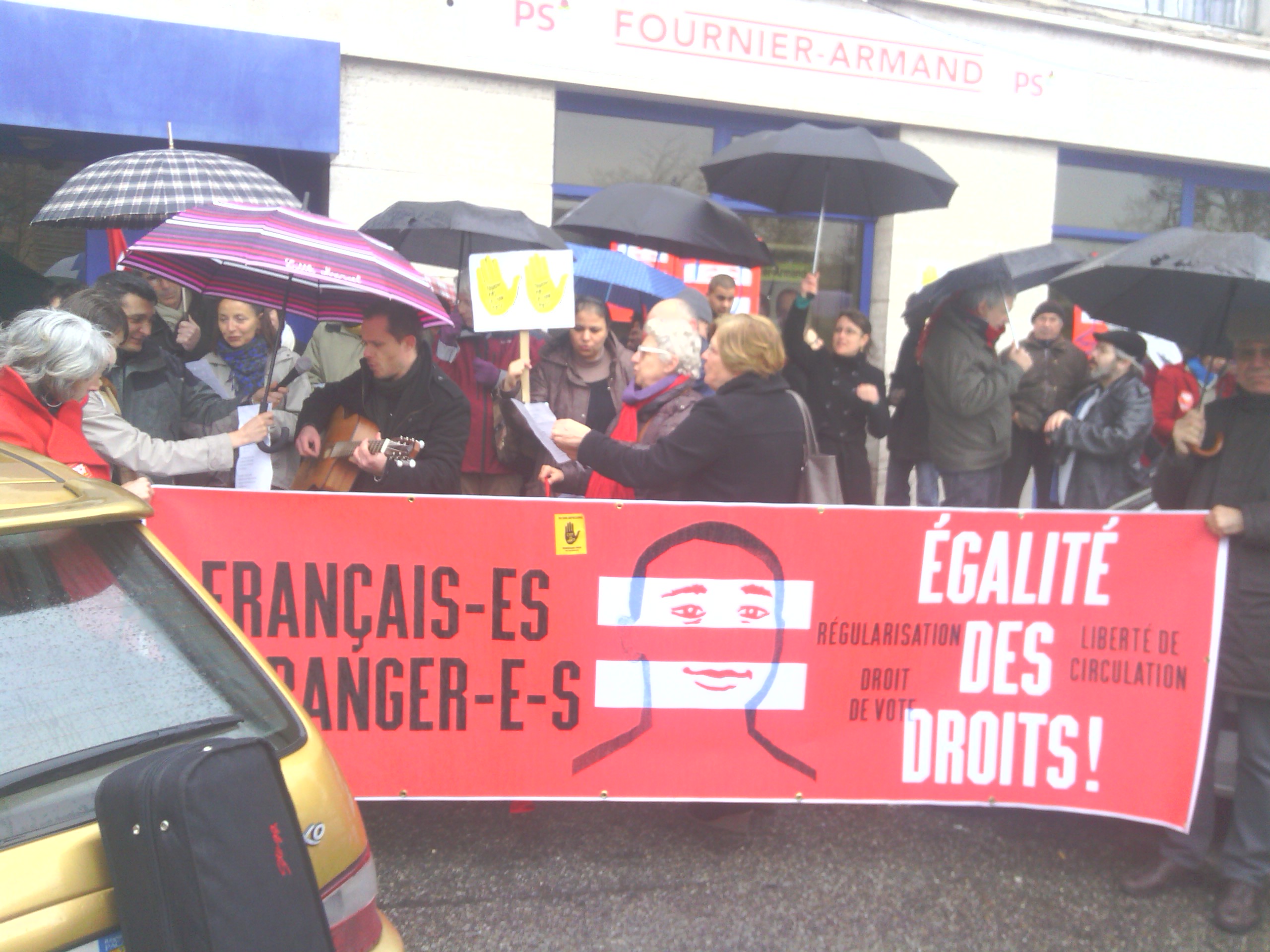 Publie le samedi 6 avril 2013 par Stef - Open-PublishingSOLIDAIRES-JUSTICE avec les associations défendant les droits des migrants-es, est déterminée à combattre sans relâche la politique d’exclusion du gouvernement et à exiger l’égalité des droits.