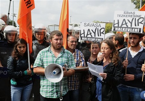 Auparavant, la police avait tiré des grenades lacrymogènes pour repousser un petit groupe de manifestants anti-guerre qui se dirigeait vers le Parlement à Ankara en scandant "Nous ne voulons pas la guerre" et "les Syriens sont nos frères".