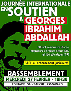 Publie le mardi 26 février 2013 par CLGIA - Open-PublishingMERCREDI 27 FÉVRIER 2013 : JOURNÉE INTERNATIONALE POUR EXIGER LA LIBÉRATION DE GEORGES ABDALLAH