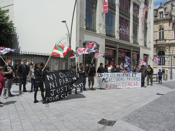 Publie le dimanche 23 juin 2013 par bearn antifascista - Open-PublishingUne quarantaine de personne se sont rassemblée devant la prefecture de Pau, en réponse à l’appel hexagonal du 23 juin 2013, pour denoncer les agressions, le climat fasciste ambiant et l’assinnat de notre camarade antifasciste Clement Meric.