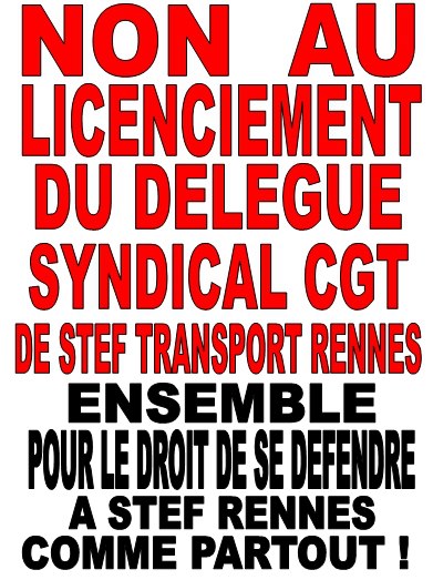 Accueil > NON AU LICENCIEMENT DU DELEGUE SYNDICAL CGT DE STEF TRANSPORT RENNES