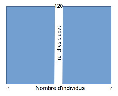 > Soit celui-ci où le nombre de naissances est plus important que le nombre de toutes les autres tranches d’ages car les décès prématurés(avant les 120 ans potentiels) les touchent toutes.