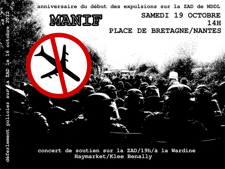 Sam. 19 oct. à Nantes : Manif 1 an du début des opérations d’expulsions à #NDDL