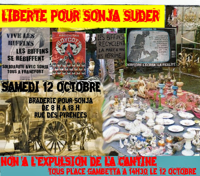 Vous trouverez sur stopextraditions.blogspot.com l’appel à une nouvelle initiative pour financer la manifestation de notre solidarité aux côtés de Sonja et face à la Cour, à Francfort, le 12 novembre, jour de l’énoncé du verdict