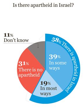 Comme disent les Anglo-Saxons, il existe un "a... word" dans le dossier israélo-palestinien : "a" comme apartheid. L’usage de ce terme qui renvoie à un précédent historiquement et géographiquement identifié, suffit généralement à déclencher la controverse. Un sondage de l’institut Dialog pour le Yisraela Goldblum Fund a eu l’idée d’en faire le thème principal d’une étude consacrée aux relations israélo-arabes (Arabes israéliens et Palestiniens), du point de vue des Israéliens de confession juive sur la base d’un échantillon assez réduit de 503 personnes. Les résultats publiés par le Haaretz sous la plume de Gideon Levy (ce qui agacera plus d’un lecteur de ce blog) sont assez éclairants.