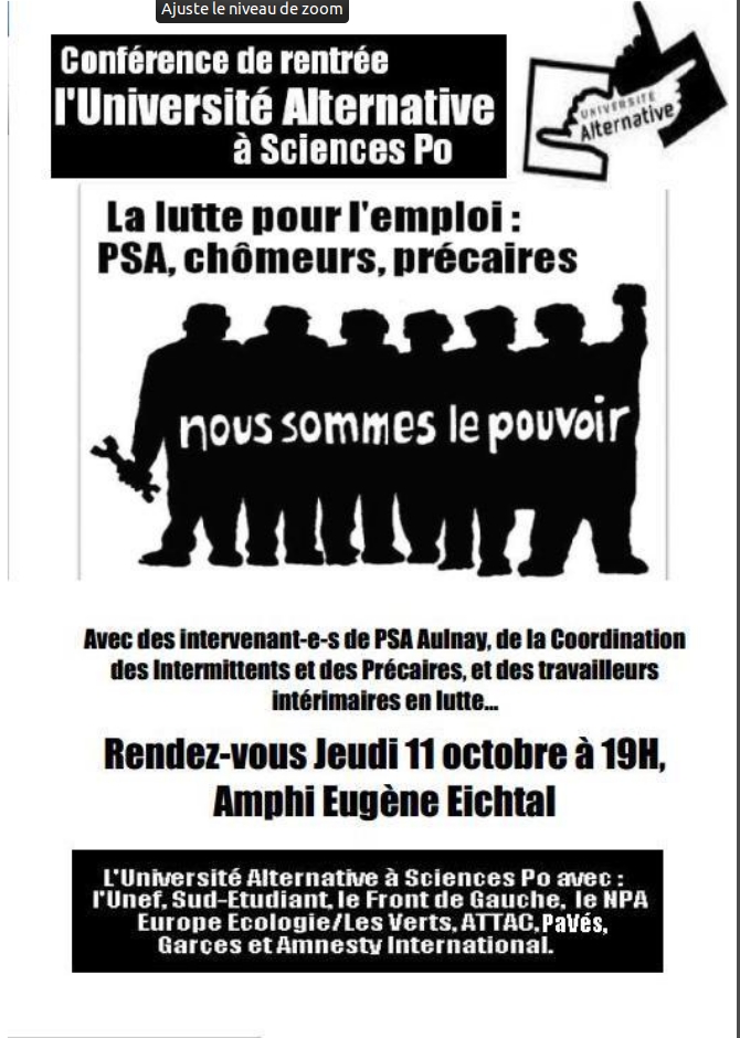 Univ. Alternative de Sc. Po : La lutte pour l’emploi : PSA, Chômeurs, précaires