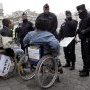 Les personnes handicapées ne veulent pas se laisser faire : Elles manifestent fortement leur colère, Des manifestants en fauteuil roulant ont forcé un barrage de police pour aller devant le parlement !