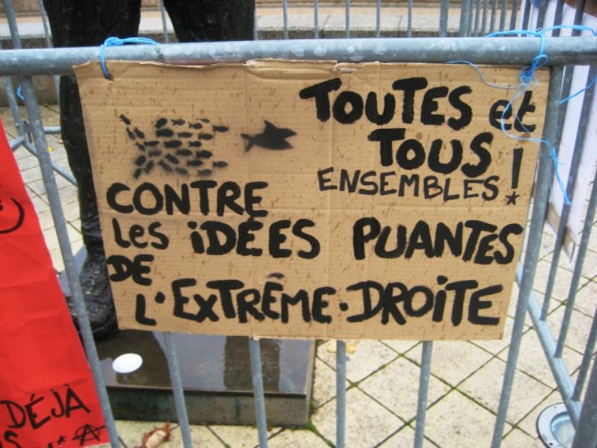 A.C:La différence majeure avec les années 1930 est qu’il n’est plus besoin d’une montée des « extrêmes » pour qu’une radicalisation aux extrêmes se produise. En témoigne le travail d’inculcation idéologique opéré non seulement par le FN depuis 1984 et son entrée sur la scène politique nationale, mais aussi par les autres partis politiques de gauche et de droite quand, chacun à sa façon, ils ont repris dans leurs programmes et dans leurs prises de positions publiques les thèmes défendus par le FN — sécurité, lutte contre l’immigration — et les ont inscrits en préoccupations centrales de la lutte politique. Les politiques actuelles en sont certes l’illustration : néolibéralisme à tout crin se traduisant par des licenciements, fermetures d’usines, délocalisations, humiliations ; lutte contre les « flux migratoires » avec son lot de camps de rétention, renvois forcés par charters (et par bateaux maintenant ?), criminalisation de l’action collective et de l’action syndicale… La liste pourrait être continuée encore notamment dans ces jeux de contournement du droit ou de « déjudiciarisation » des règles démocratiques opérés aux sommets de l’État. Mais ces politiques ne sont possibles et pensables que parce que la configuration et les règles du jeu politique ont changé sous l’effet d’un glissement à droite de l’ensemble du champ politique, d’une forte réorientation sur les enjeux électoraux et d’une modification dans les discours politiques.