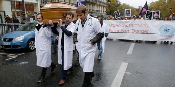Les opposants à La fermeture de L’hôpital Hôtel Dieu et de ses urgences ont mimé le premier novembre , jour de la Toussaint, les funérailles d’un patient mort de n’avoir pas été pris en charge à temps par des services saturés.