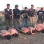 The Syrian rebels posed casually, standing over their prisoners with firearms pointed down at the shirtless and terrified men.