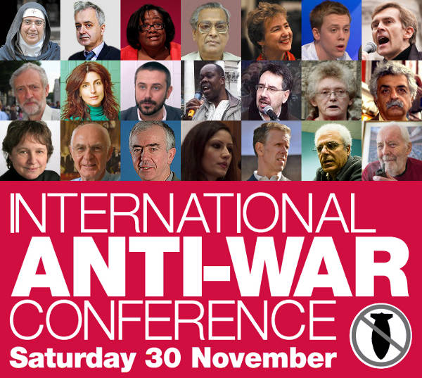 Diane Abbott MP, Tariq Ali author, Tony Benn president Stop the War, Jeremy Corbyn MP, Lindsey German convenor Stop the War, Edward Horgan Peace and Neutrality Alliance, Ireland, Kate Hudson General Secretary CND, Joan Humphreys Military Families Against the War, Owen Jones author, Mother Agnes Mariam nun based in Syria, Seumas Milne journalist, Manik Mukherjee All India Anti-imperialist Forum, AndrewMurray Unite the Union, Explo Nani-Kofi