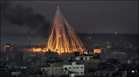 Under international law – white phosphorous may be used as a smoke screen but not on civilian populations. Gaza is one of the most densely populated ares in the world and Israel’s use of white phosphorous is very clearly being used over civilian areas. Operation Cast Lead resulted in between 1,166 and 1,417 Palestinian and 13 Israeli deaths; 4 of them were from friendly fire. The United Nations conducted an investigation and released the now famous Goldstone report which acknowledged that Israel’s use of white phosphorous was indeed a war crime. It was after significant pressure and a couple of years later – the author retracted his report’s findings. The United Nations Human Right Council, however, still found Israel guilty of war crimes and they ordered that Israel compensate Palestinian families for the damage caused by the Israeli government. They wrote HERE: