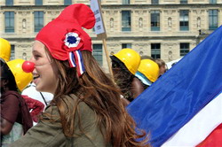 "Un peu d’internationalisme éloigne de la Patrie, beaucoup d’internationalisme y ramène ! " Qui se souvient ? Tout le monde sait aussi que le drapeau tricolore a le premier, sans doute, représenté la Patrie et le symbole de cette République Française attaquée par toute l’Europe réactionnaire. Le drapeau tricolore fut l’emblême de la Révolution autant que celui des couleurs de la République. Le malheur, c’est qu’aujourd’hui il soit devenu un gadget utilisé par la candidate SAUCE IALISTE à la manière de Pétain. Comme si c’est le drapeau tricolore à la fenêtre de nos maisons qui pourrait libérer le pays et son économie des griffes du libéralisme, cette sangsue mortifère qui appauvrit jusqu’à la misère insupportable les classes populaires les plus fragilisées. Pour un peu, SARKOLENE ferait apprendre aux maîtres et maîtresses et aux enfants des écoles , la nouvelle version du maréchal de sinistre mémoire : "MA ROYALE, NOUS VOILÀ !!" BEURK !!!! La Gauche est très très très mal barrée : HEUREUSEMENT QUE NOUS DISPOSONS POUR LE PREMIER TOUR DU SEUL VOTE UTILE QUI SOIT , le BULLETIN DE MARIE GEORGES BUFFET. Plus son poids pèsera, mieux la Gauche se relèvera du traquenard royalien. LE TEMPS PRESSE POUR CONVAINCRE LES GENS DE GAUCHE : AU TRAVAIL, VITE !!!! PIERROT DE Bigorre et Armagnac