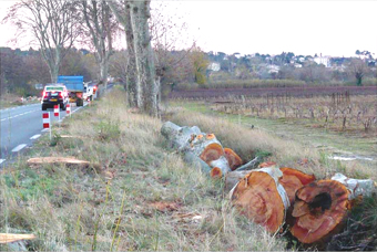 On génocide les platanes pour élargir les routes afin que puissent y circuler les camions géants dont la mode vient d’Amérique !