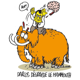 Darcos a eu chaud aux fesses et, fortement encouragé par Sarkozy, a été prié de revoir sa copie : mi-décembre, il reporte la réforme de sa seconde en 2010. Le 8 janvier, il explique que, finalement, seuls 1 500 RASED (réseaux d’aides spécialisées aux élèves en difficulté) seront sédentarisés, ce qui reviendrait à n’en supprimer que la moitié sur les 3 000 annoncés cette année. Il arbore, désormais, un style mielleux qui jure avec le mépris qui l’animait jusque-là, usant à tout-va du terme « concertation » comme d’un anesthésiant… Bref, il feint le ministre qui nous a compris, qui ravale son orgueil, plie et finit par reculer. Bravo. Étirer le calendrier, c’est beau, c’est chaud. Mais c’est vraiment nous prendre pour des jambonneaux. Comme Dati à la Justice, il est là pour faire le boulot. En l’occurrence, et sous couvert de visées pédagogiques, compenser les 11 200 postes supprimés en 2008, les 13 500 suppressions annoncées pour 2009, les 40 000 à venir dans les trois prochaines années, si l’on en croit les syndicats. Et, surtout, honorer la mission qu’il s’est fixée depuis sa puberté : décapiter le mammouth une bonne fois pour toutes…