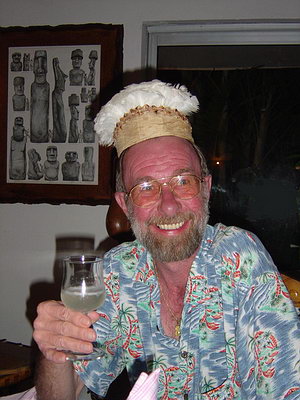 Chemise dominicaine, coiffe de Rapa Nui (Ile de Pâques) et dans la main, pisco sour. Ça va pour les explications ?
