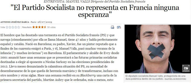 1. Manuel Valls pose bâillonné dans la presse espagnole, 29 juillet 2009, 12:47