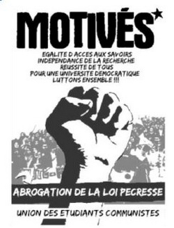 Pour toutes ces raisons, l’Union des étudiants communistes appelle à amplifier la mobilisation pour l’abrogation de la LRU et à participer en ce sens à la journée de manifestation du jeudi 29 novembre.