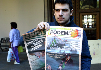 Le 17 septembre 2008, 200 000 exemplaires d’un journal éphémère étaient distribués gratuitement dans toute la Catalogne. Le jeune activiste Enric Duran s’y vantait d’avoir escroqué près de 500 000 euros à 39 organismes financiers en sollicitant une soixantaine de crédits à la consommation ou autres prêts à des entreprises fictives. Le journal, baptisé Crisi, appelait à l’insoumission bancaire et à l’association de tous les mauvais payeurs, volontaires ou contraints. Revenu à Barcelone après six mois d’« exil préventif », Enric a été arrêté sur un campus occupé, à l’issue d’une opération policière digne d’un raid antiterroriste, selon le syndrome Tarnac. À l’heure où les crapules gouvernementales capitalisent l’immoralisme en renflouant les banquiers, une question hante le monde : comment échapper à leurs griffes ? L’action d’Enric et du groupe Crisi a le mérite de mettre les doigts là où ça fait mal : au coeur du système, dans la plaie ouverte de sa fiction monétaire. Le 17 mars, Podem !, un nouveau journal gratuit, imprimé sur papier couleur saumon comme les pages économie des grands quotidiens, a été distribué à 350 000 exemplaires un peu partout en Espagne. Podem ! interpelle les victimes de la basse finance, spécialement ceux et celles d’entre nous à qui les Thatcher, Blair, Zapatero et Sarkozy ont promis une vie de petits propriétaires et qui se réveillent enchaînés à l’hypothèque, courant après une thune virtuelle, cumulant les boulots pour rembourser les intérêts et les agios et qui, aujourd’hui, sombrent les premiers dans les eaux troubles de la « crise systémique ». Crisi-Podem ! invite à rompre les rangs et, pragmatique, donne des pistes pour s’en sortir, façon An 01 de la décroissance. Entre naïveté un brin messianique et sens pratique non dénué d’humour, ce qui est proposé ici, c’est de réinventer nos existences, collectivement. Et ça, ça nous intéresse.