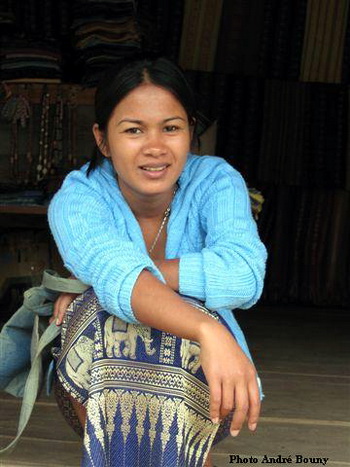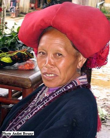 Encore une côte et le village Dzao Rouge est là, au milieu d’un cirque entouré de montagnes emmitouflées d’écharpes de nuages. Aussitôt notre char est pris d’assaut par des femmes recouvertes de crêtes rouges où pendent des rondelles d’argent. Elles sortent des maisons de paille et de planche organisées à même le sol ou sur pilotis. Elles accourent, nous accaparent, nous ravissent littéralement, chassant les autres qui tentent d’approcher. Elles ont le teint cuivré, sourcils et crâne rasés, leur visage ciré est surmonté d’une coiffe gonflante en tissu rouge. Elles portent un gilet brodé de fil rouge recouvert d’une longue veste, un pantalon indigo descendant sous les genoux. Parées de larges colliers, de bracelets d’argent et de lourdes boucles d’oreilles, elles disent et répètent qu’elles sont nos "copines". Cela veut dire que nous sommes leurs hôtes et qu’elles seules peuvent nous conduire au travers du village et, bien sûr, que si nous achetons des tissages brodés : nous devons les acheter à elles car le destin nous pose devant elles à ce moment-là. Elles seules peuvent et doivent nous les vendre. C’est la règle. Aussi, les autres n’insistent pas et s’éloignent. Debout, assises, marchant, ces femmes brodent. Les hommes sont plus effacés, un fend du bois. Il porte un pantalon et une veste indigo aux pans brodés, un carré rouge dans le dos, un bonnet au même motif. Il bruine et, dans l’allée centrale du village, une épaisse volute de nuage vient à notre rencontre et nous fait disparaître. Il se peut que des écailles et des branchies poussent sur notre peau et sous la gorge, entourés de "copines" bariolées et d’enfants colorés reniflant des mèches de morve. Des sources lavent l’unique rue du village que constitue une large veine de marbre blanc affleurante et patinée, comme si quelque puissance supérieure avait attribué le noble matériau à ce lieu d’une extrême modestie. Mais une Dzao rouge se moque bien de cette roche grenue sur laquelle elle marche chaque jour avec sa hotte sur le dos, elle tisse, brode, et veut vendre son travail pour améliorer sa vie et celle de ses enfants. Le brouillard se lève, dégage les massifs forestiers abritant des essences précieuses comme le lim (bois de fer) et le bassia. Des bois lourds, résistants au soleil et à la pluie, réputés imputrescibles. Ces forêts d’altitude hébergent aussi des espèces animales rares dont bon nombre sont en voie d’extinction. Sur le côté, je devine le poids du regard d’une Dzao Rouge sur mon profil. Elle m’examine, silencieuse. On se regarde, étonné. En fait, on se démasque. Être ici n’est pas normal. Je ne veux pas la regarder comme une attraction touristique mais comme une rencontre authentique. Je scrute le fond de ses yeux, sachant que ses ancêtres -qu’elle vénère- venus de Chine centrale il y a sept ou huit siècles parlaient le dialecte miao dao, comme elle sait que je suis venu par l’autobus du ciel. On en rit. Aujourd’hui, les Dzao Rouge cultivent sur brûlis le coton pour le tissage, mais aussi le riz et le maïs. De larges pierres plates bâillent sur le sol pour piéger les rongeurs. Ils élèvent des volailles, des cochons noirs et des chèvres. Ils travaillent le cuir, l’argent, et fabriquent le papier. Devant les arbres sacrés, ils honorent les génies de la montagne et du vent, du feu et de la rivière. Le chaman règle les rites mortuaires, crémation, mise en terre, ou bien inhumation en plein air dans une grotte avec bijoux et réserve de nourriture en jarre pour le défunt. Au départ du village de Ta Phin, notre véhicule ne démarre pas. Les Dzao Rouge poussent pour qu’ont partent.