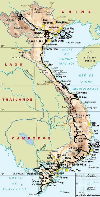 Juin, juillet et août 2008, parcours d’un voyage de travail et de plaisir : Hanoi - Lao Cai ; Lao Cai -Sapa ; Sapa - Lao Cai ; Lao Cai - Hanoi ; Hanoi - Hoa Lu - Tam Coc - Hanoi ; Hanoi - Haiphong - Ha Long ; Ha Long - Hanoi ; Hanoi - Phu Ly - Ninh Binh - Thanh Hoa – Vinh - Ha Tinh - Dông Hoi - Vinh Môc - Dông Ha - Huê ; Huê - Dà Nang - Hoi An ; Hoi An - Kontum - Pleiku ; Pleiku - Ban Mê Thuôt ; Ban Mê Thuôt - Ninh Hoa - Nha Trang ; Nha Trang - Dalat ; Dalat - Mui Né ; Mui Né - Phan Thiêt - Xuân Lôc - Biên Hoa - Hô Chi Minh-Ville ; Hô Chi Minh-Ville - Tân An - My Tho - Cai Bè - Vinh Long - Can Tho ; Can Tho - Soc Trang - Bac Liêu - Cà Mau ; Cà Mau - Pointe de Cà Mau - Cà Mau ; Cà Mau - Rach Gia ; Rach Gia - Ba Chuc - Châu Dôc ; Châu Dôc - Long Xuyên - Hô Chi Minh-Ville.