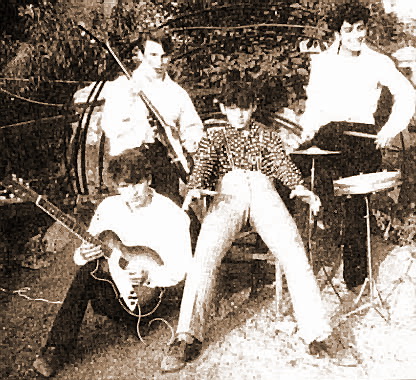 Une petite photo de Robert Hue alias Willy Balton et de son groupe les Rapaces,il est au centre en chemise à pois.