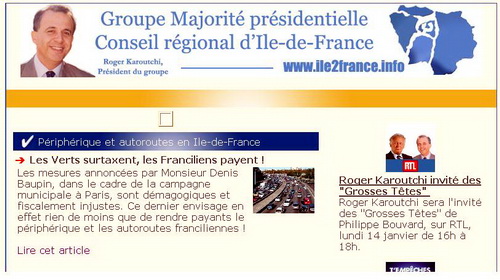 Sur la lettre d’information du groupe UMP du Conseil Régional d’Ile de France, M. Karoutchi veut dénoncer les embouteillages qui, comme chacun sait, ne sont pas causés par les voitures mais par les Verts et les socialo-communistes.
